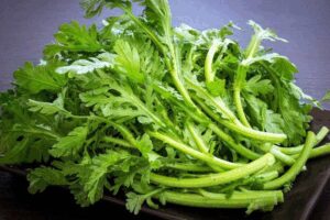 Với các thành phần như tinh dầu, axit amin, protid, glucid, lipid cùng vitamin A, B, C… cải cúc mang đến nhiều lợi ích cho sức khỏe. Theo y học cổ truyền, cải cúc có vị ngọt, hơi đắng nhẹ, mùi thơm, the. Do có tính mát nên cải cúc được xem như một loại rau, giúp khai vị, ăn ngon miệng, hỗ trợ tiêu hóa, trừ đờm, giải nhiệt....